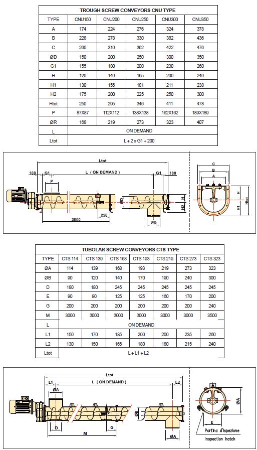 Las otras características de construcción son similares a las de los tornillos sinfín flexibles (véase la ficha relativa del producto).